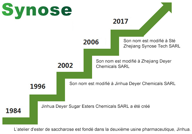 Zhejiang Synose Tech Co., Ltd. est parmi les premières entreprises qui font des recherches sur les esters de sucre de la série S. En 1983, elle a été fondée le projet d'ester de saccharose. En 1984, elle a accompli l'essai moyen. Après plus de 30 ans d''amélioration et de percées technologiques, elle est maintenant devenue le fabricant national d'ester de saccharose qui a une plus grande échelle de production et les variétés complètes en Chine.