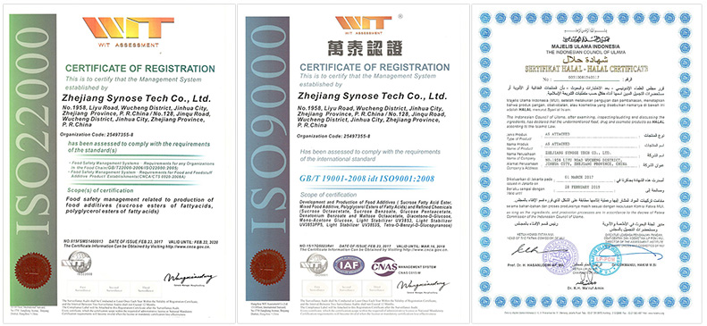 Adhering to the operation tenet of "Derives with technology, Developing with quality, Depends on service", we would like to cooperate with friends of all circles for common development. In March 2002, the company passed the ISO9001 Quality Management System Certification; in July 2008, it passed the pre-registration of "REACH regulation"; in March 2014, it passed the ISO22000 Food Safety Management System Certification; in March 2017, it passed the MUI HALAL Certification, etc. The establishment of management system is a long-term and constantly perfected process, through which Zhejiang Synose Tech Co., Ltd. has experienced the leap-forward development again and again.